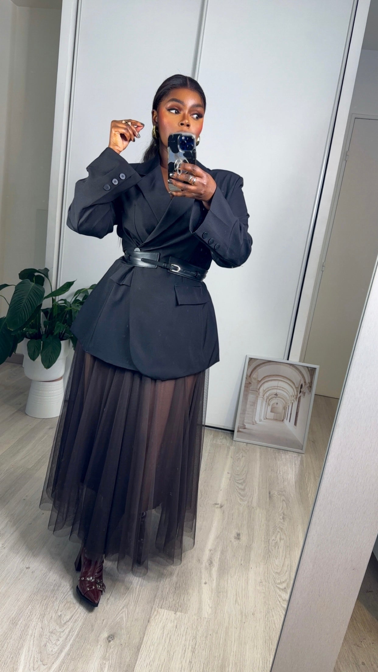 Féminine, légère et pleine de caractère, cette jupe en tulle marron chocolat apporte une touche bohème et sophistiquée à ton look. Son volume aérien et sa teinte chaude subliment toutes les silhouettes.