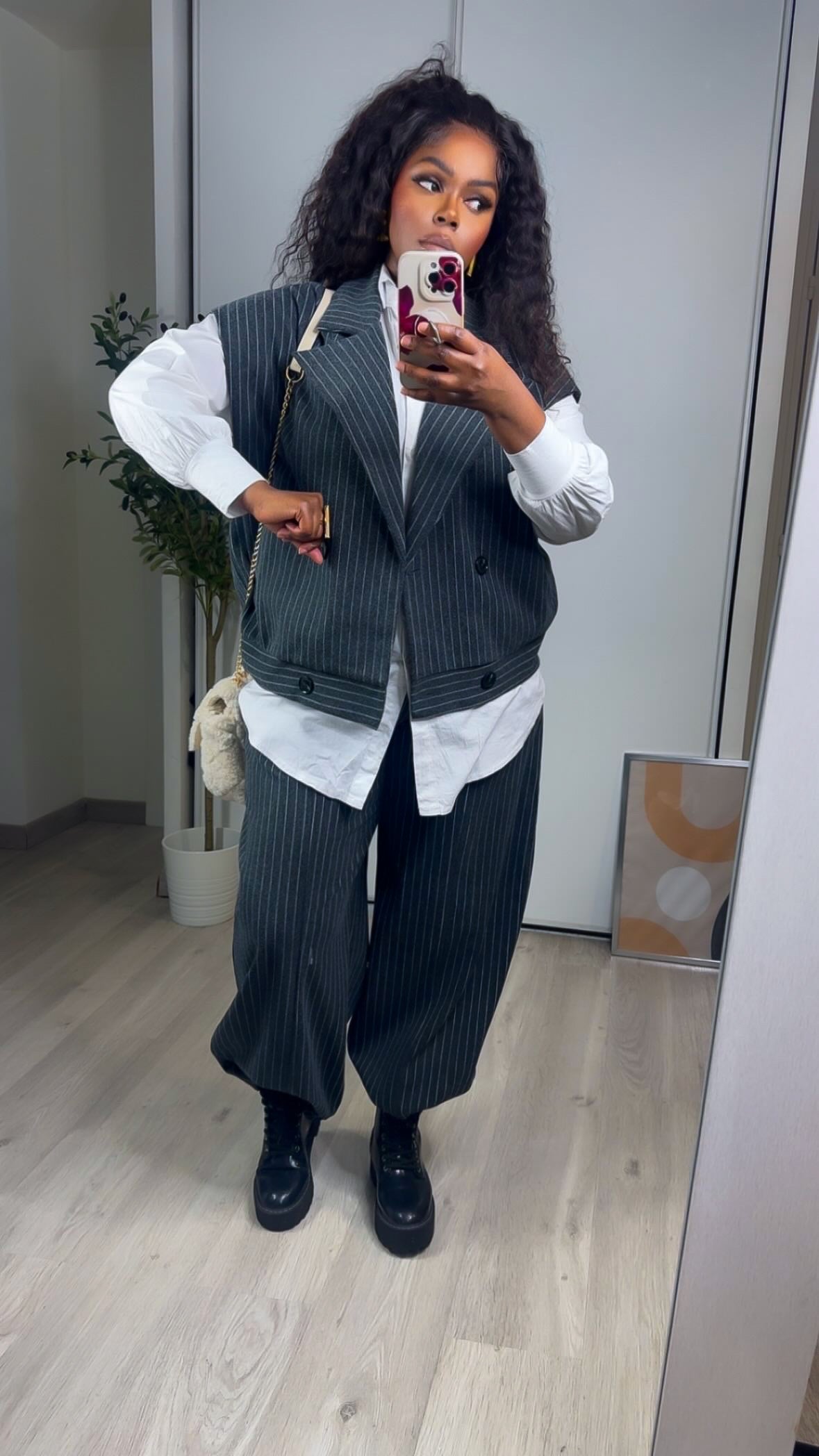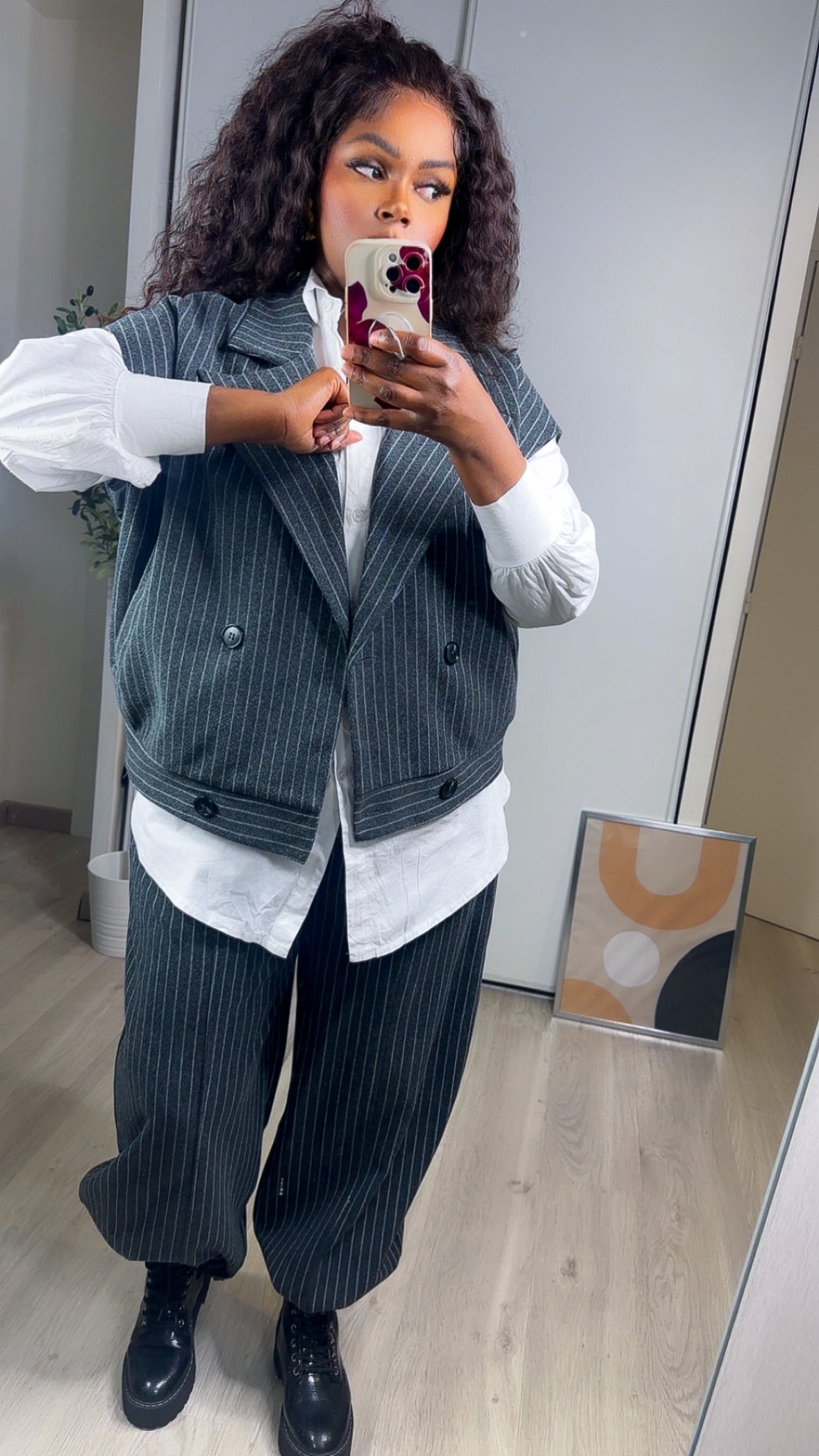 Un ensemble à l’allure moderne et affirmée, parfait pour un look chic décontracté ou professionnel.