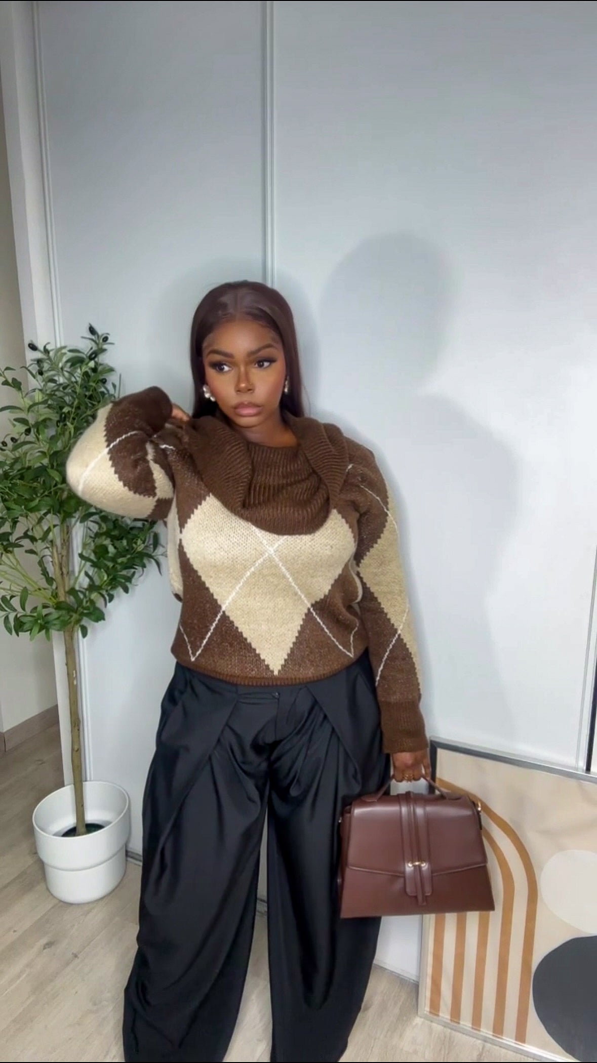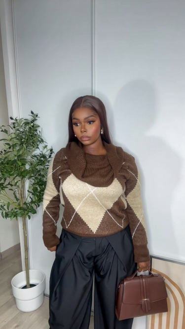 Pull col bateau marron
